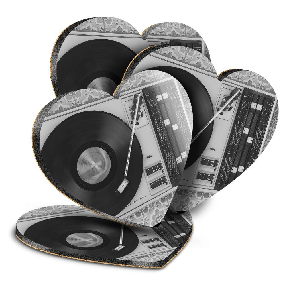 4x Heart MDF Coasters - BW - Retro Old Vinyl Record Player Music #43444