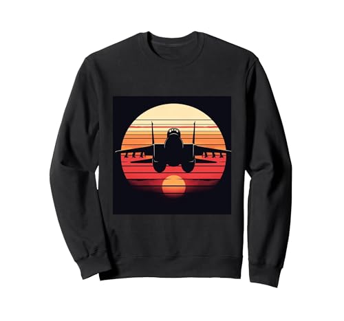 F-14 Tomcat Fighter Jet Silhouette Sunset Military Aviation Sweatshirt, Adult Unisex, Black, Medium