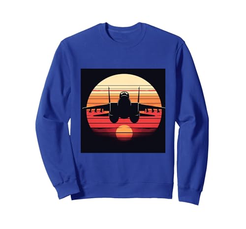 F-14 Tomcat Fighter Jet Silhouette Sunset Military Aviation Sweatshirt, Adult Unisex, Royal Blue, Medium