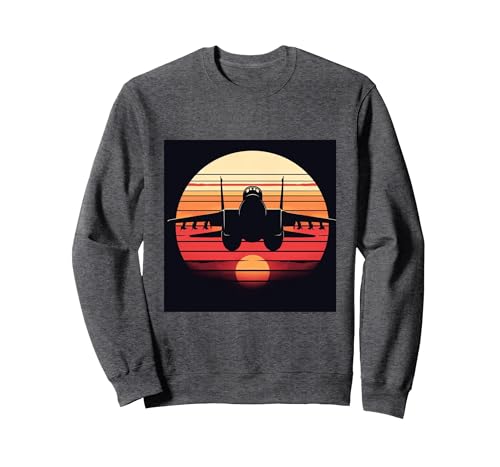 F-14 Tomcat Fighter Jet Silhouette Sunset Military Aviation Sweatshirt, Adult Unisex, Dark Heather Grey, Medium