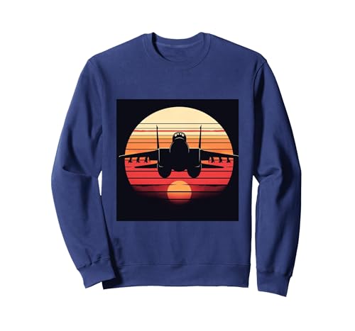 F-14 Tomcat Fighter Jet Silhouette Sunset Military Aviation Sweatshirt, Adult Unisex, Navy Blue, Medium