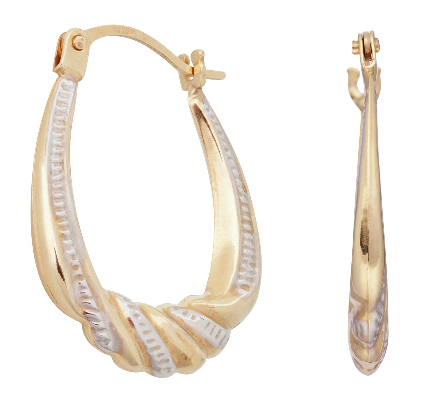 Revere 9ct Gold Two Tone Twist Creole Hoop Earrings