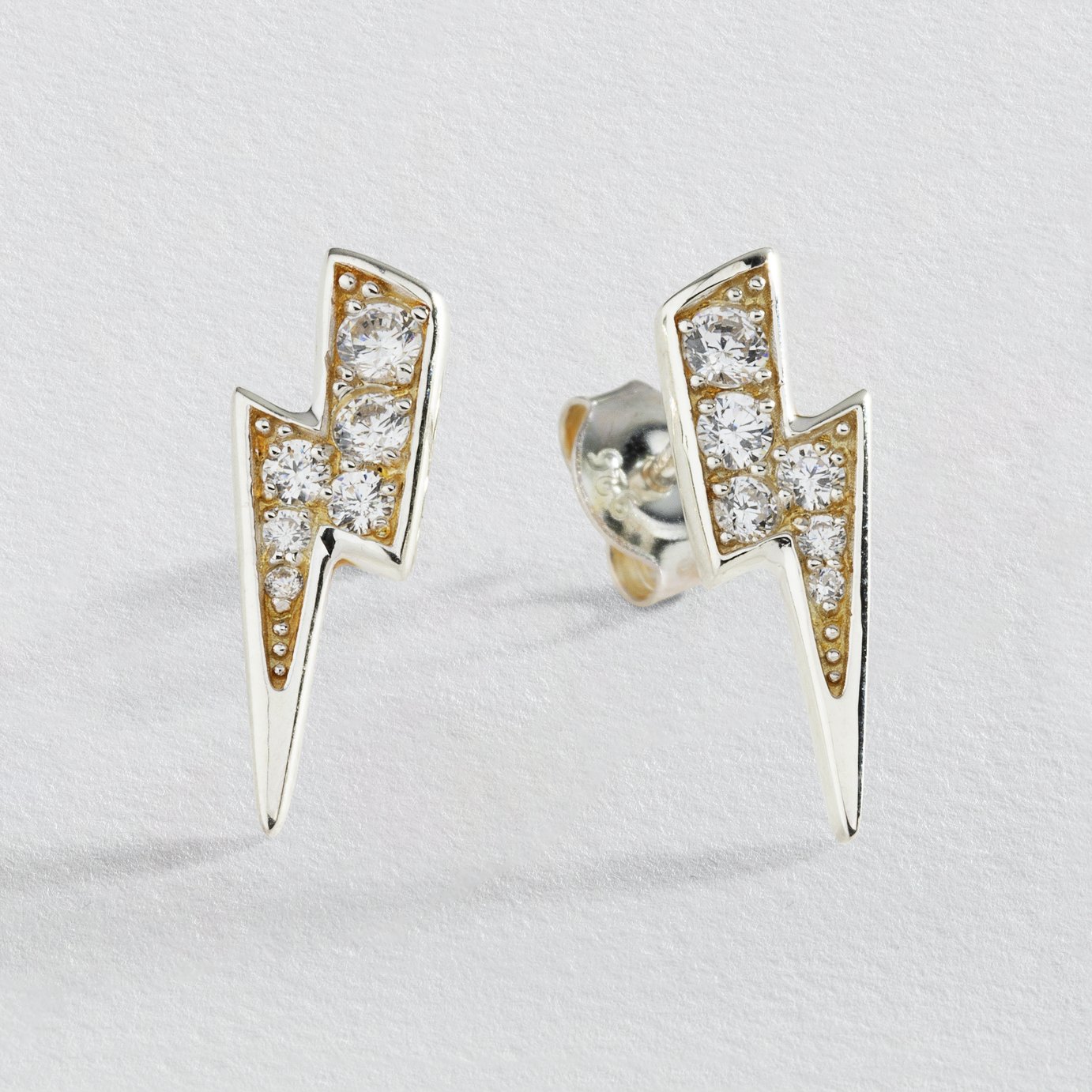 Revere Gold Plated Silver Lightning Bolt Stud Earrings