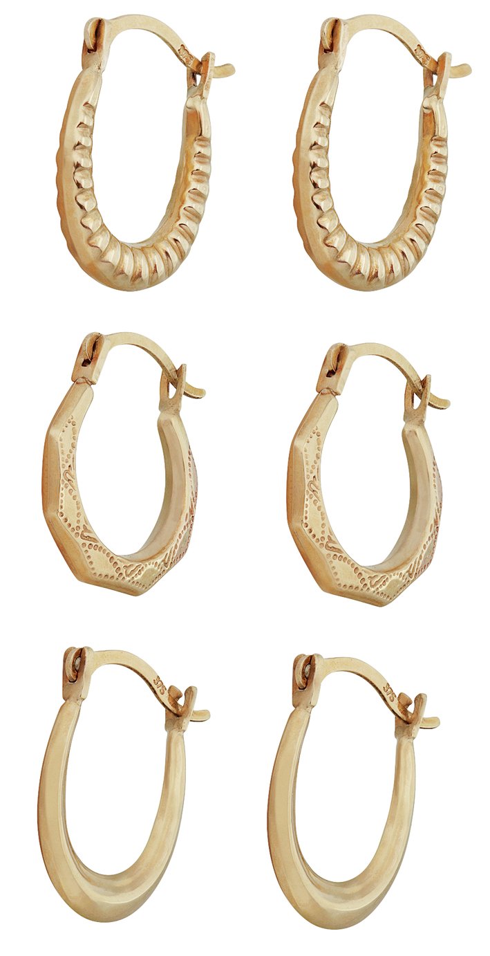 Revere 9ct Gold Mini Creole Earrings - Set of 3 Pairs