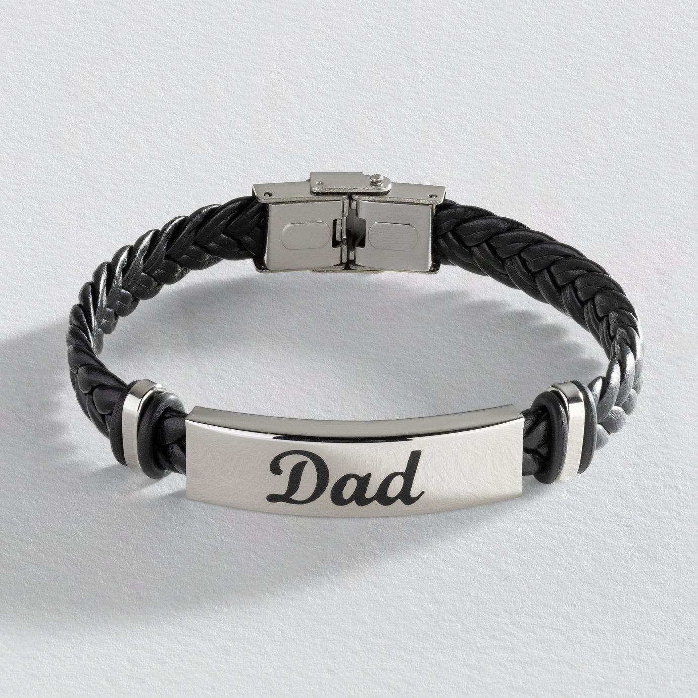 Revere Men's Black Leather Stainless Steel Braided Bracelet