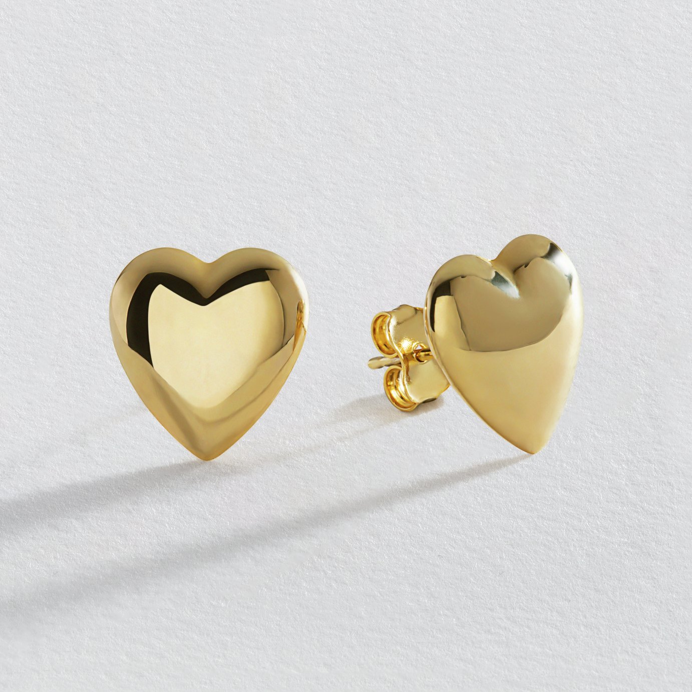 Revere 9ct Yellow Gold Puffed Heart Stud Earrings