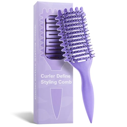 Curl Defining Brush Hair Brush Curved Vented Detangling Hair Brushes for Women Men Wet Dry Hair Use, Faster Blow Drying Styling Professional Paddle Vent Detangler Brush
