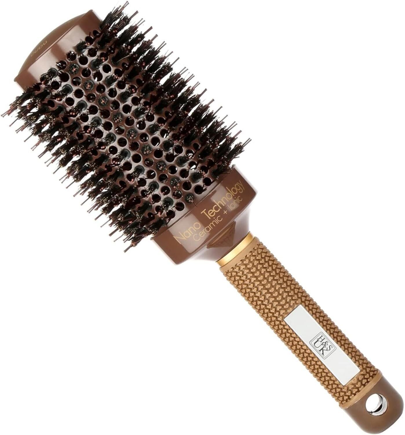 H&S Round Hair Brush Blow Dry Drying Boar Bristle 53mm Large Round Barrel Nano