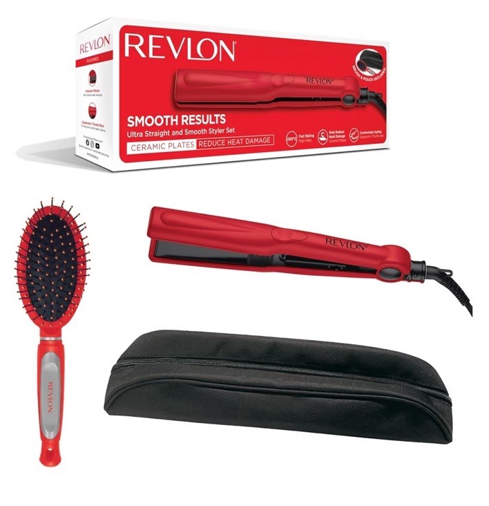 REVLON Ultra Straight and Smooth Styler Gift Set with Brush and Storage Pouch