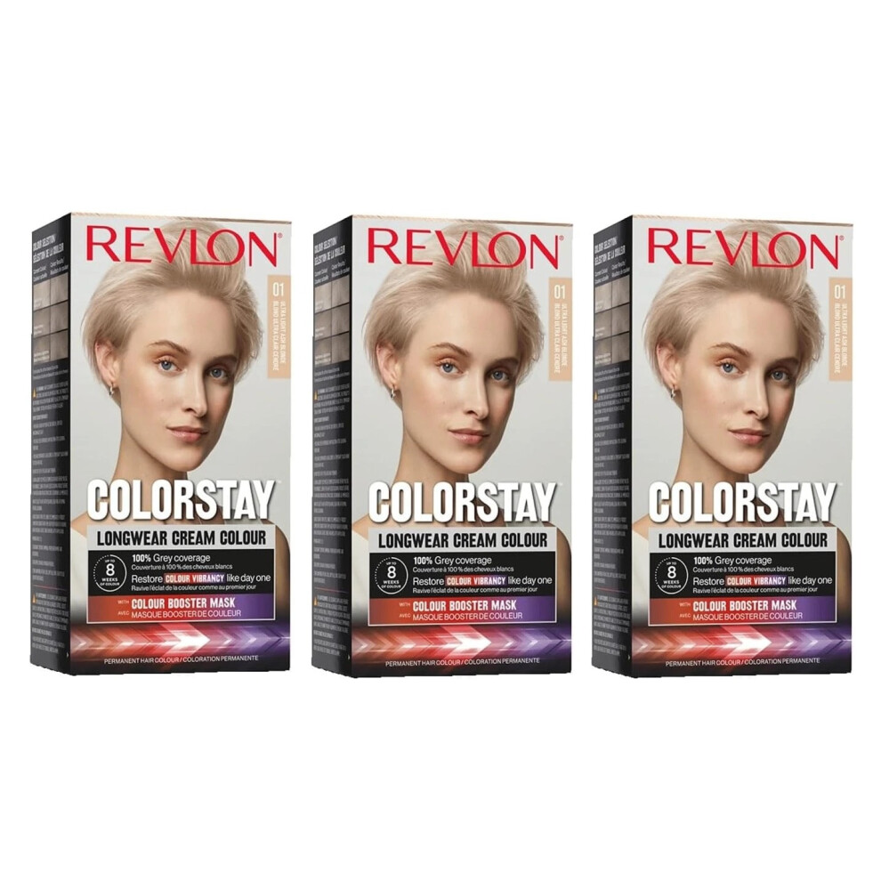 3x Revlon Colorstay Permanent Cream Colour Hair Dye 01 Ultra Light Ash Blond
