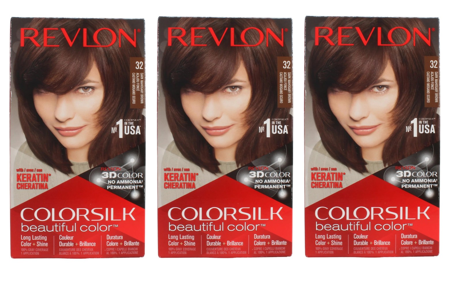 Revlon Colorsilk Beautiful Colour 32 Dark Mahogany Brown Hair Dye 3 Pack