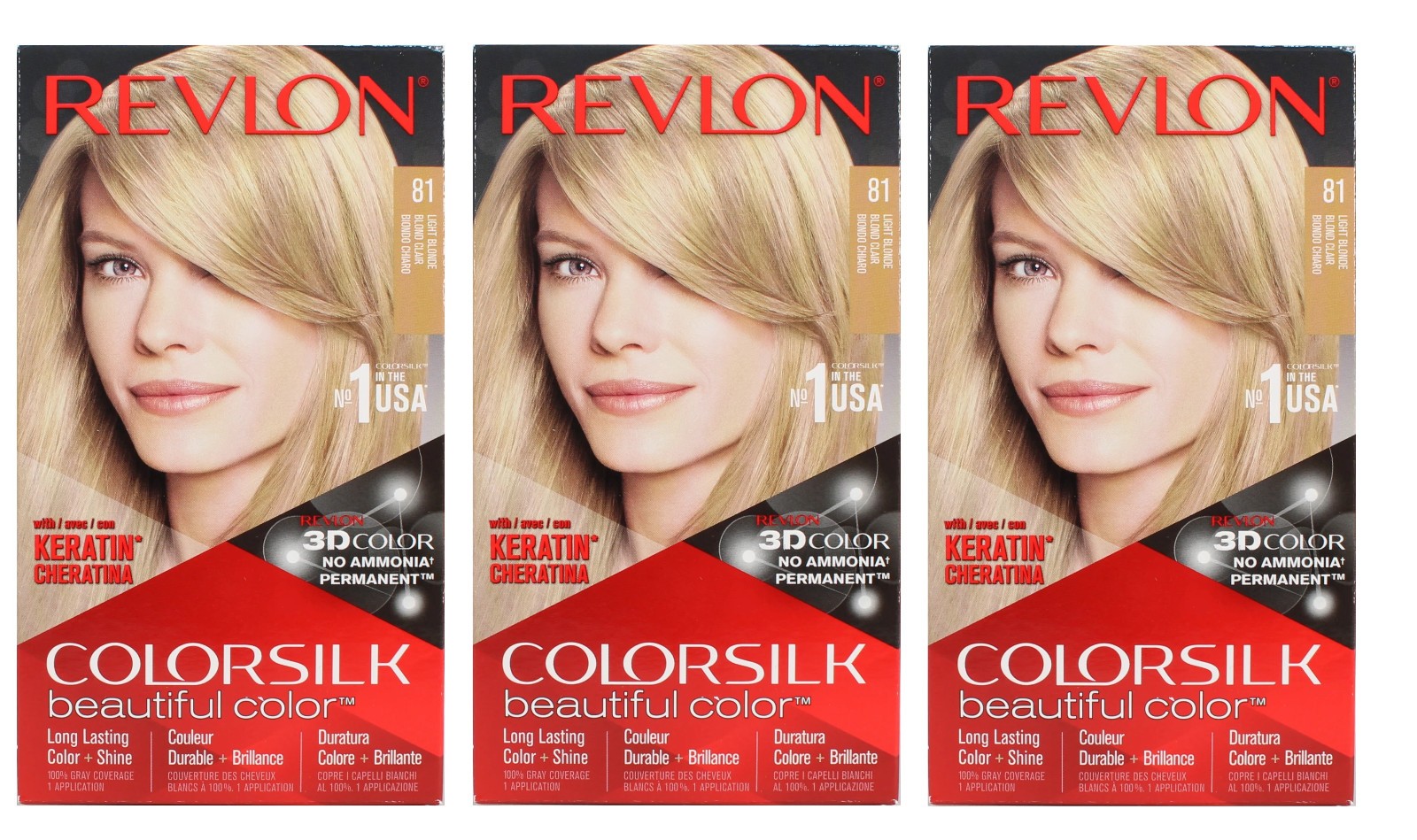 Revlon Colorsilk Beautiful Colour 81 Light Blonde Permanent Hair Dye 3 Pack