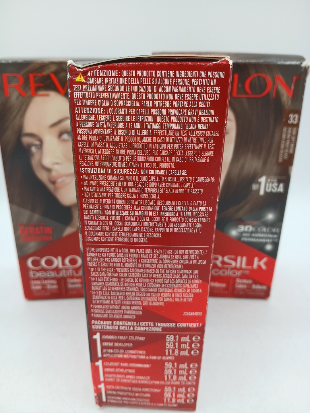 Revlon 3D Gel Permanent Colorsilk Dark Soft Brown 33 - PACK OF 3. SM6