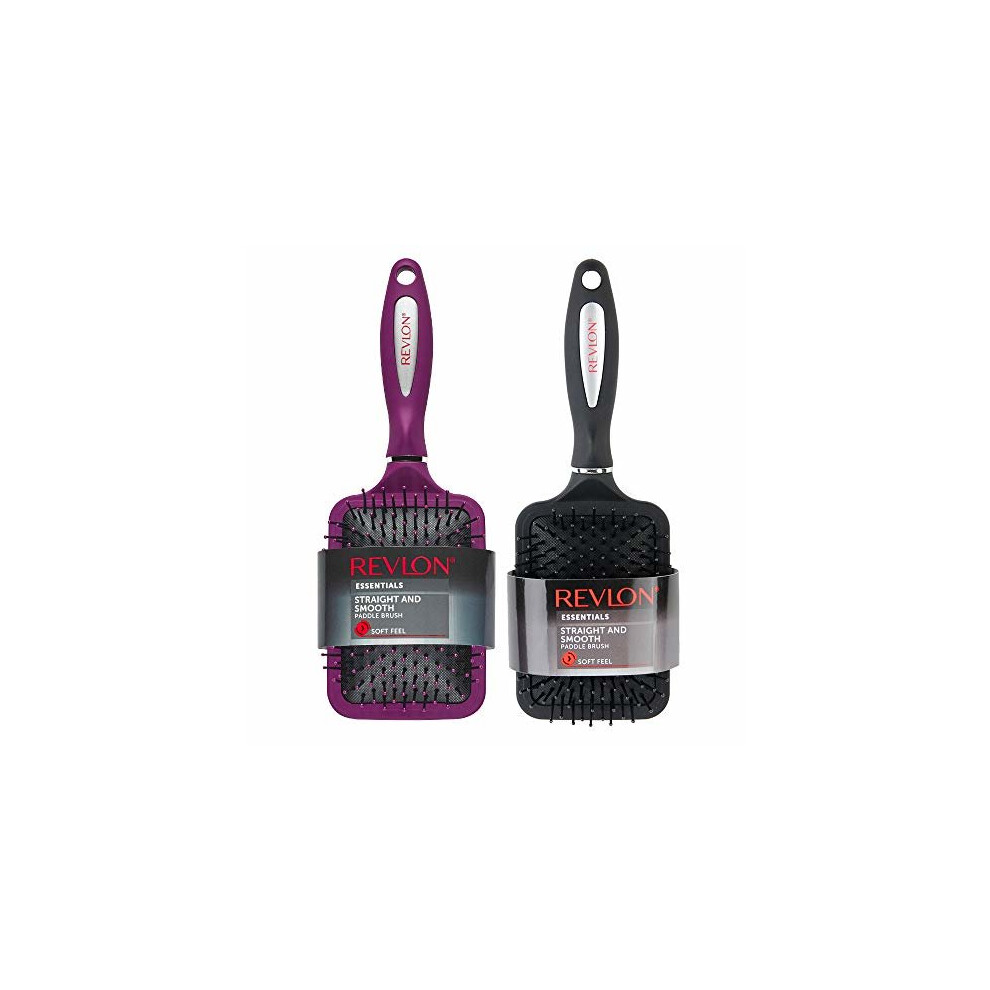 Revlon Straight & Smooth Soft Touch Paddle Hair Brush Set, Black + Berry