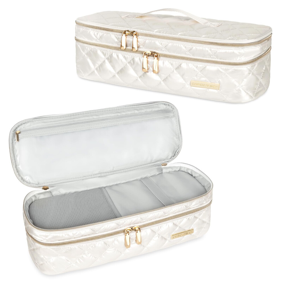 MOMOJULI Cute Quilted Hair Tools Bag with Zip Hair Styling Accessories Travel Storage Case for Shark FlexStyle,Dyson Airwrap Hair Dryer,Curling Iron,Revlon Hair Tools