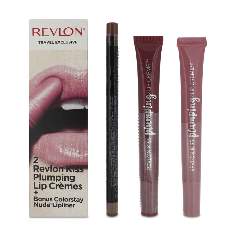 Revlon 2 x Pink Lip Cream Kiss Plumping Lip Creme & Nude Lipliner Liner Set