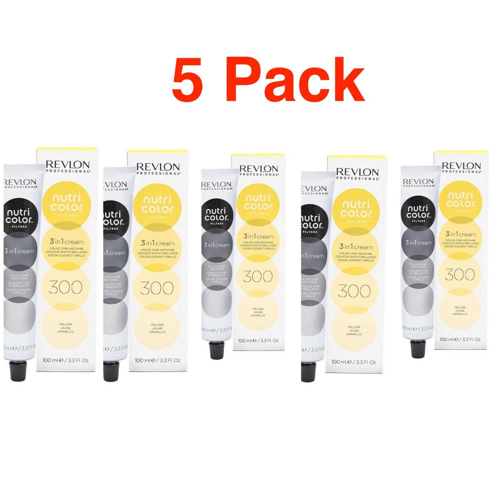 5 x Revlon Nutri Color Filters 3 in 1 Cream Hair Colour 100ml, 300 Yellow