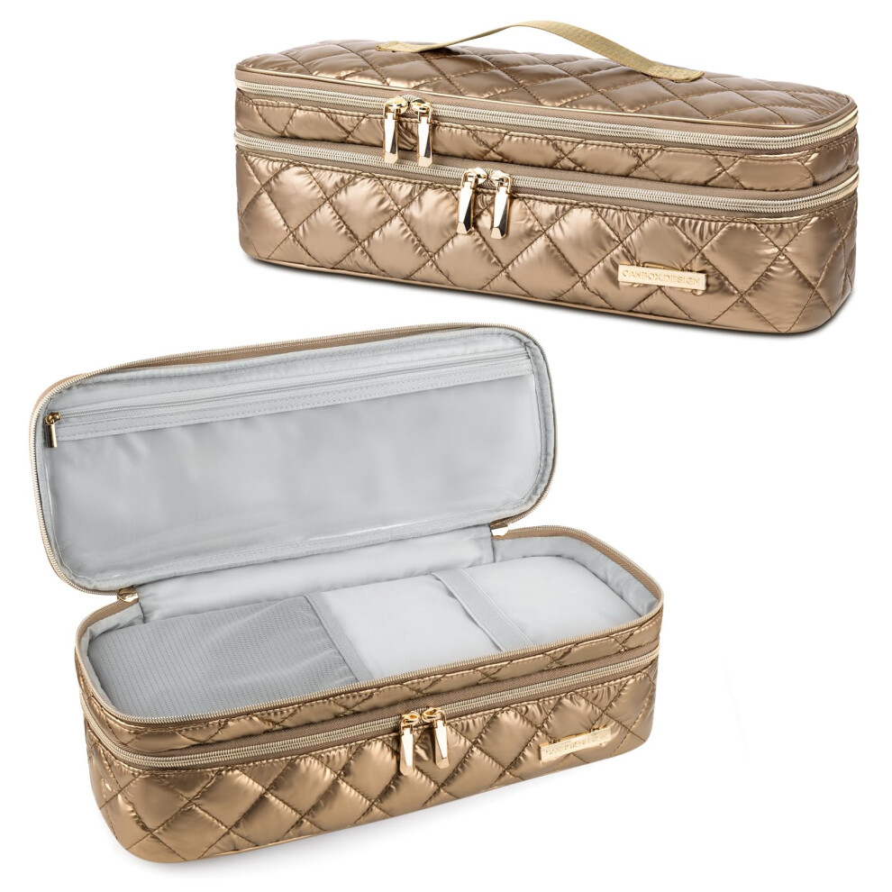 Double-Layer Travel Carrying Case for Revlon One-Step Hair Dryer and Volumizer Brush, Quilted Khaki Organizer Bag