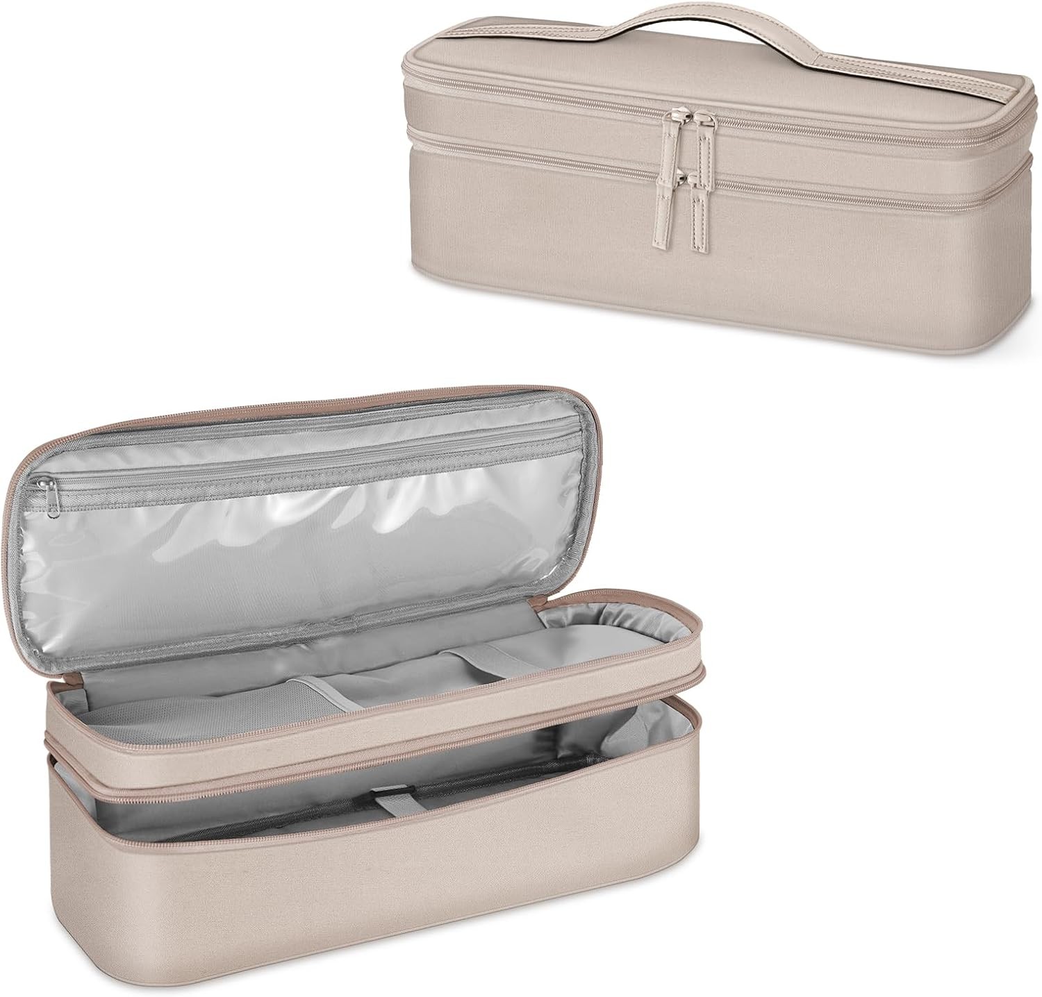 SITHON Double-Layer Travel Carrying Case for Revlon One-Step Hair Dryer/Volumizer/Styler, Water Resistant Storage Organizer Bag Compatible with Shark FlexStyle Attachment (Bag Only) (Champagne)