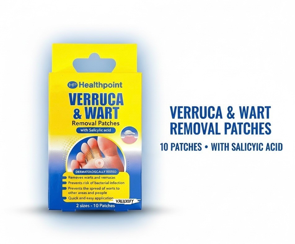 Verruca & Wart Removal Patches with Salicylic Acid – 10 Patches (2 Sizes)