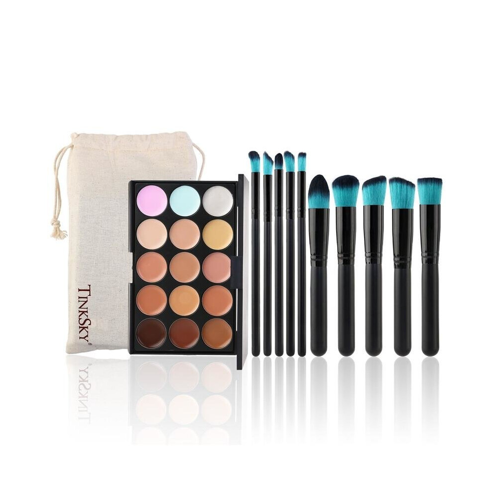TINKSKY 15 Colors Contour Face Cream Makeup Concealer Palette with 10pcs Makeup Brushes