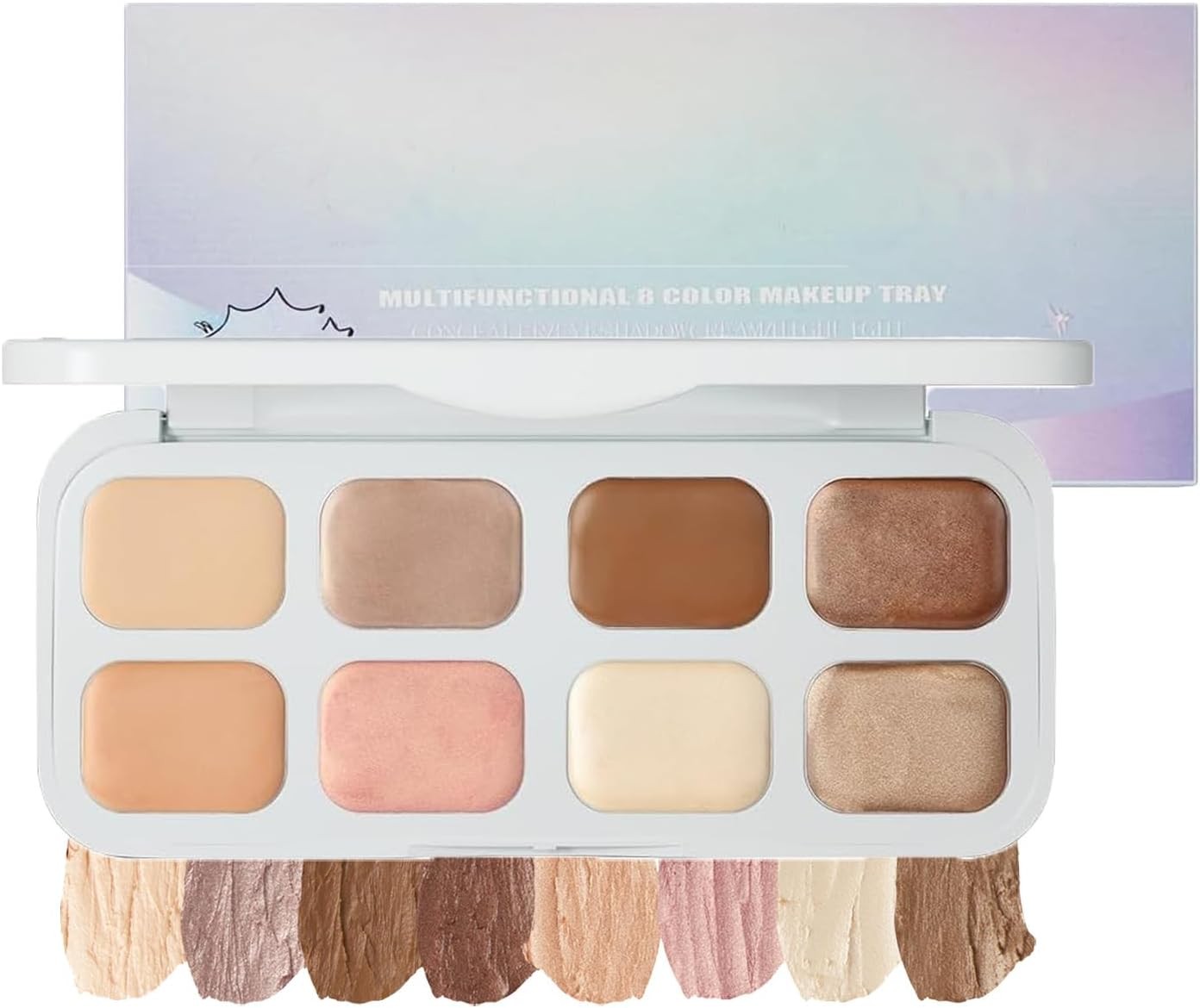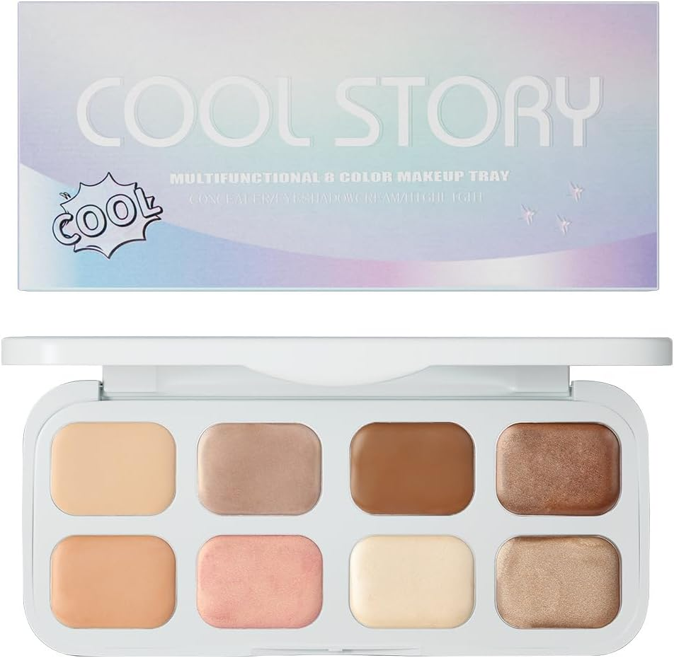 8 Colors Cream Eyeshadow Palette, Multi-Use Highlighter & Contour & Concealer M