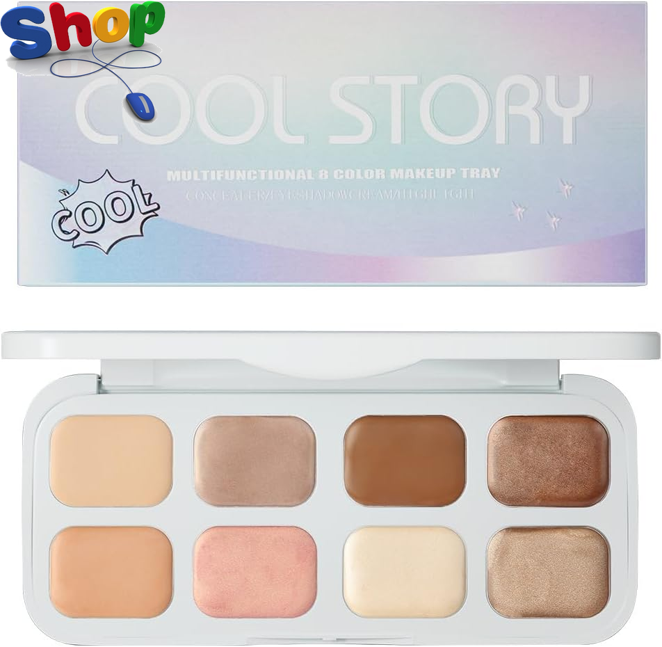 8 Colour Cream Eyeshadow Palette - Multi-Use as Highlighter & Contour, Highly P