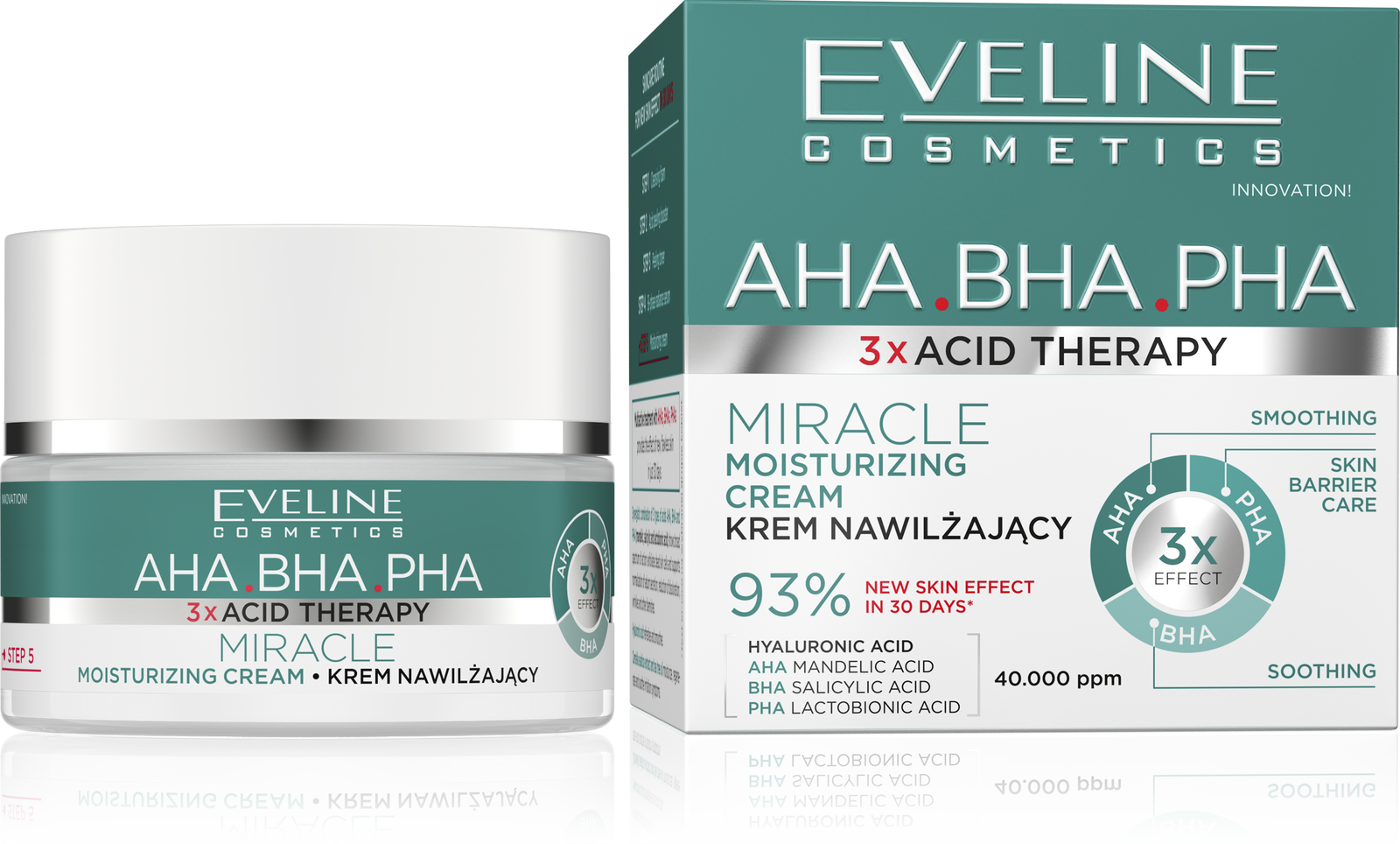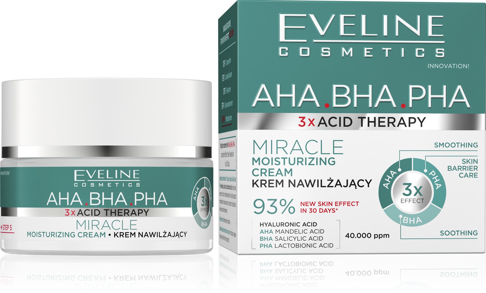 Eveline 3X Acid Therapy Miracle Moisturizing Day Night Cream Vegan Formula 50ml