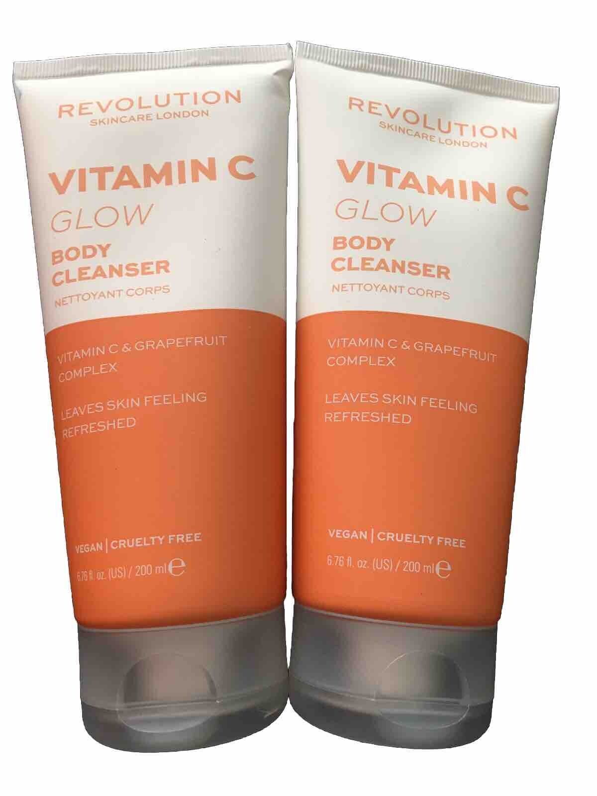 2 x Revolution Beauty London Skincare, Vitamin C Glow, Body Cleanser, 200ml