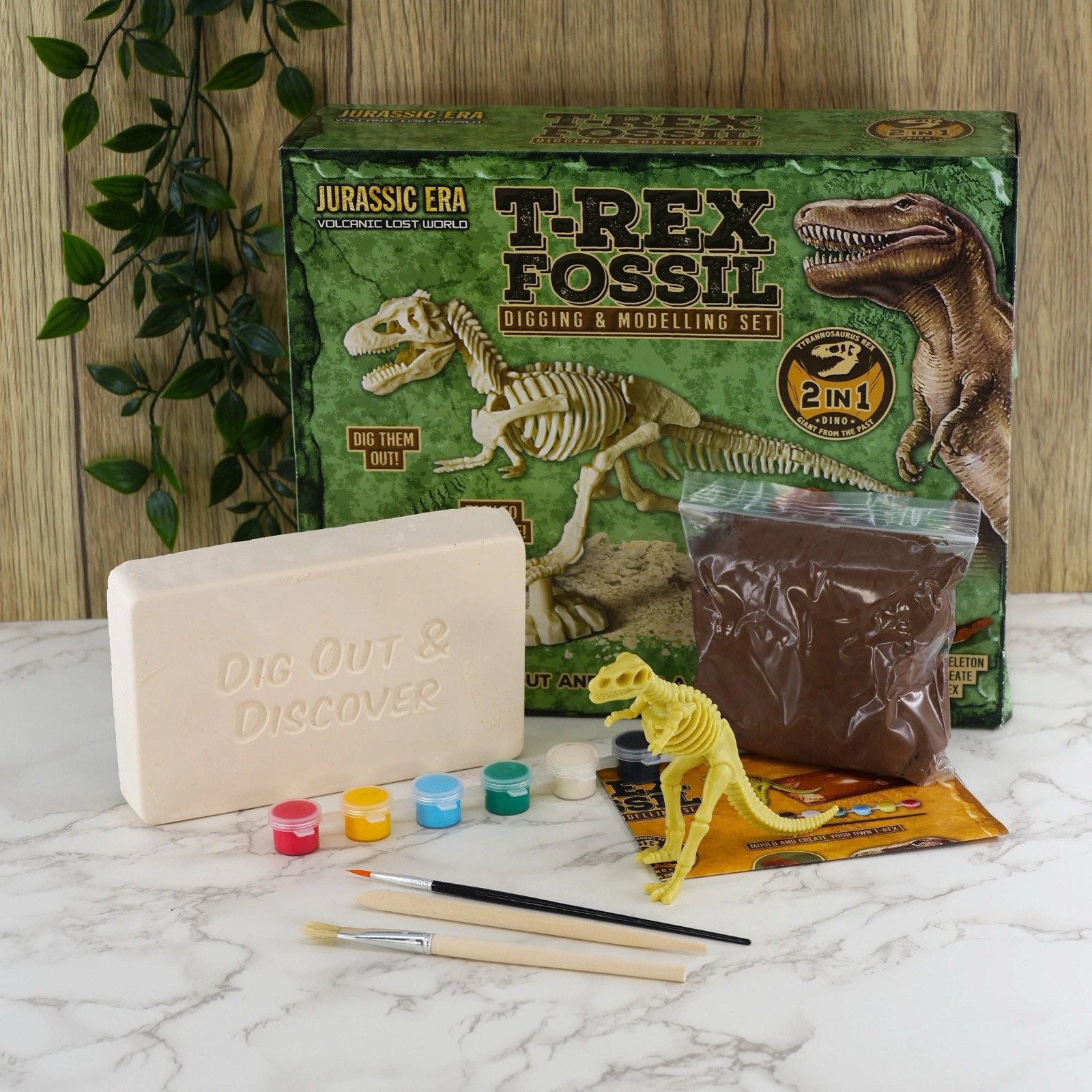 T-Rex Dinosaur Digging Fossil 2 in 1 Excavation Kit Modelling Dough Set Toy