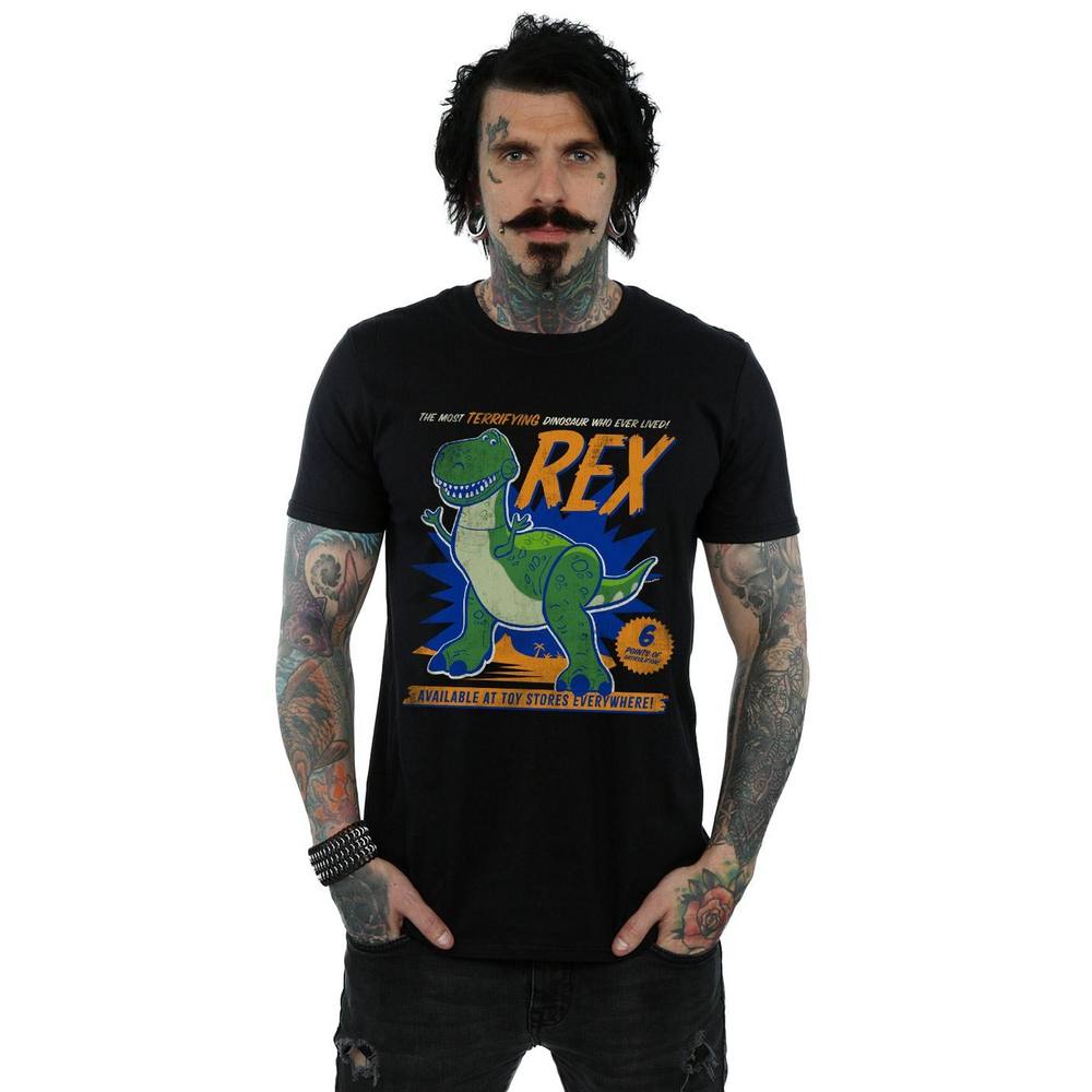 Disney Mens Toy Story 4 Rex Terrifying Dinosaur T-Shirt (Black) Cotton - Size X-Large