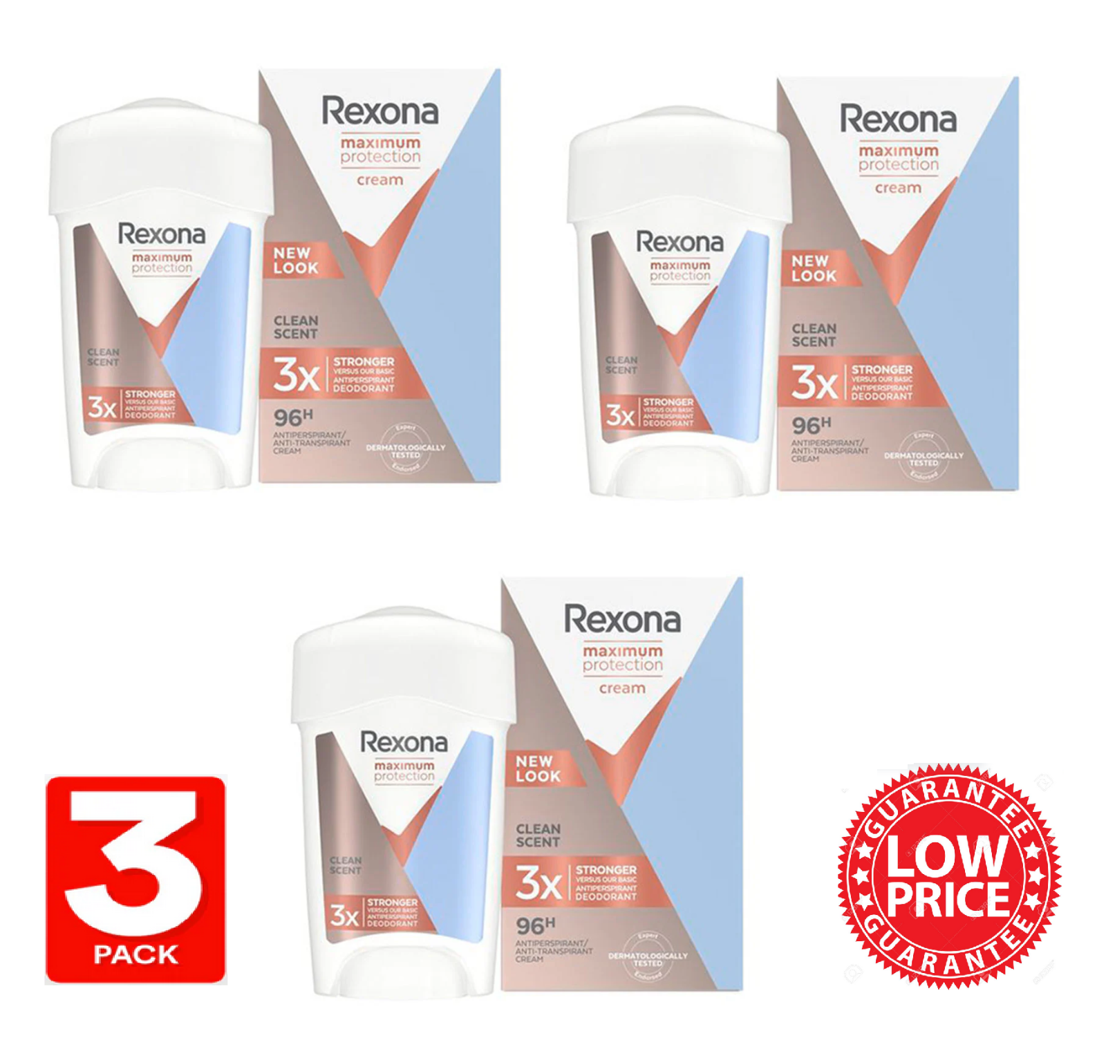 Rexona Sure Underarm Deodorant Maximum Protection Clean Scent Deo Cream 3x45ml