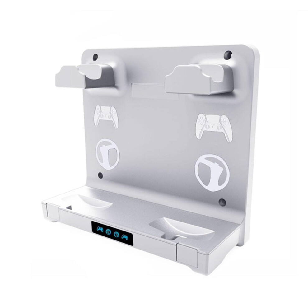 Asixxsix Dual Controller Charging Dock with Wall Stand, 2 USB Ports, 15 RGB Light Effects, Headset Hook, ABS and Metal Material Wall Mount Game Console Controller Stand