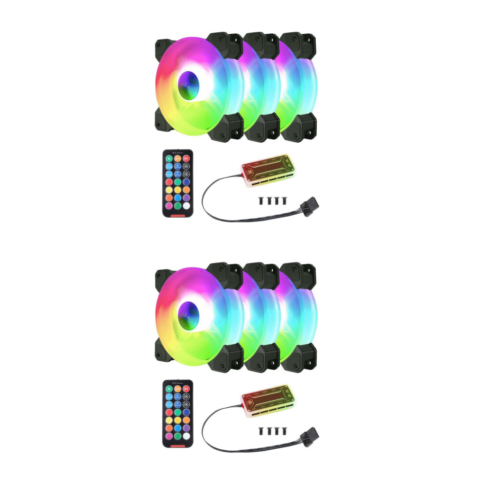 6pcs 120mm RGB PC Computer Case Fans Quiet Cooling Noise Reduction with Remote