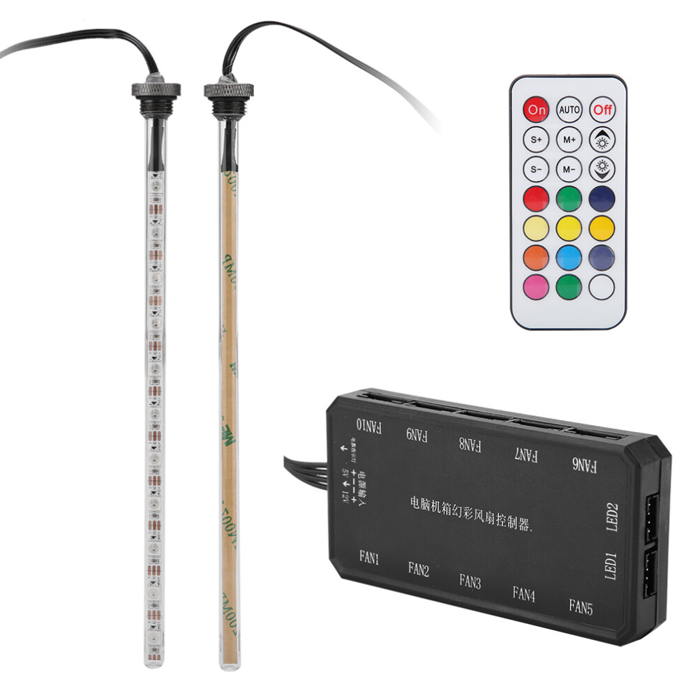 ARGB PWM Fan Hub With 9 Ports, 17 Key Remote Control And Streamer Lighting Modes, Universal RGB Controller For PC Fans And LED Strips Waterproof Glass