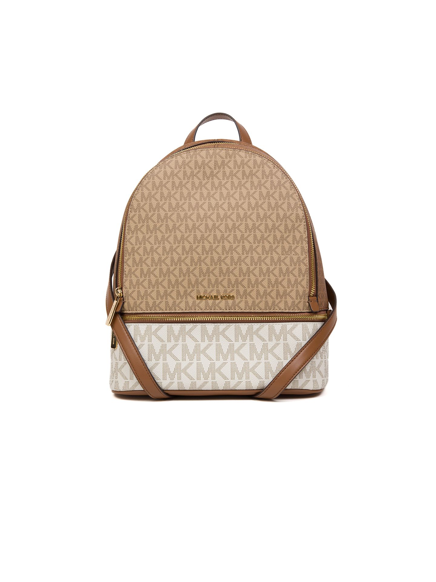 Michael Kors Womens Rhea Medium Zip Backpack - Camel Canvas - One Size