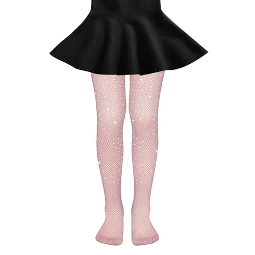 Amexo 2 Pieces Sparkle Rhinestone Fishnet Tights for Girls Ballet and Dance Kids Pantyhose