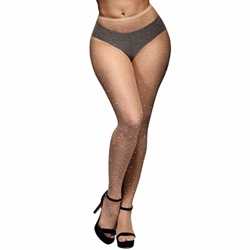Rhinestone Fishnet Tights for Women, Sparkle Fishnet Stockings with High Waist Design, Glitter Mesh Pantyhose with Sheer Fishnet Pattern and