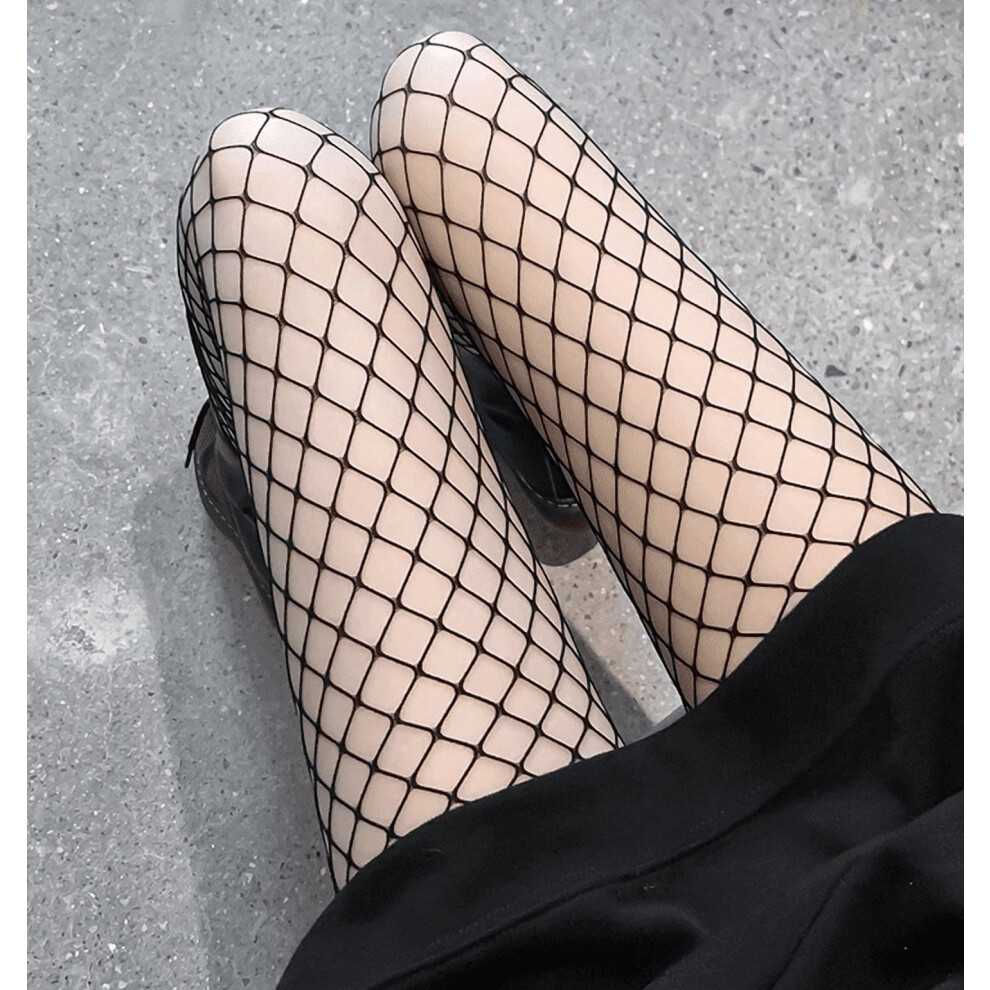 Women 2 Pairs Fishnet Stockings Black Mesh Pantyhose High Waist Rhinestone Tights