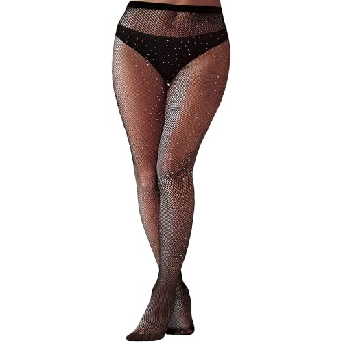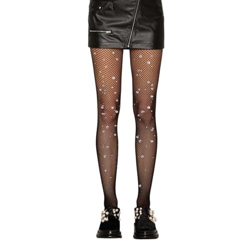 Bybyseno Sexy High Waist Sparkle Rhinestone Fishnet Party Tights Women, Glitter Fish Net Tights (UK, Alpha, One Size, Regular, Black)
