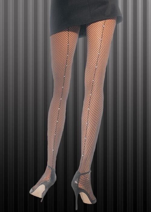 Sancto International Gothic Fishnet Tights with Rhinestone Back Seam