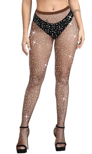Forevers Womens Fishnet Tights Glitter Fishnets Diamond Halloween Tight Rhinestone Pantyhose Sparkly Socks, Coffee