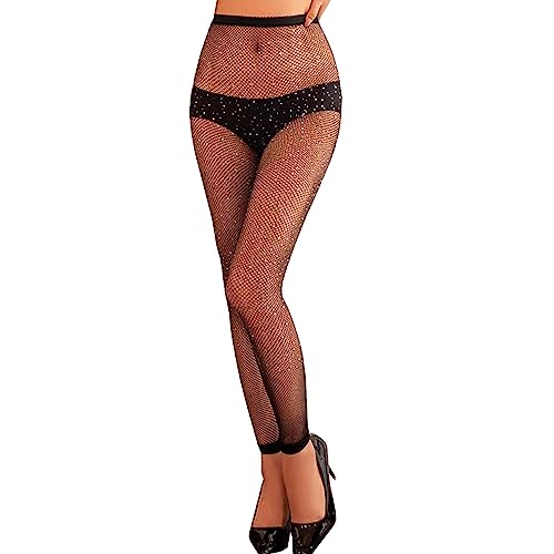 Rhinestone Fishnet Tights Womens,Sparkle Rhinestone Mesh Stockings High Waist Sparkle Fishnet Tights Stretchy Glitter Diamante Black Stockings for Dancing Party Holiday