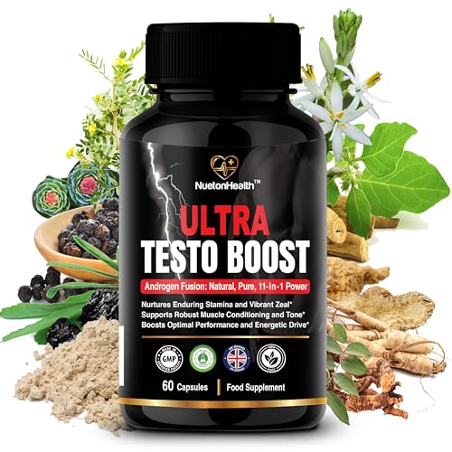 NuetonHealth Ultra Testo Boost - Tribulus, Ashwagandha, Ginseng, Shilajit, Ginkgo, Rhodiola Rosea - Premium Natural Testosterone Supplements for Men - 11 Potent Ingredients - 60 Booster Capsules