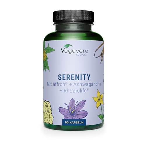 Vegavero Serenity | Natural Stress, Relaxation & Cognitive Supplement | L-Tryptophan, Ashwagandha, Rhodiola and Lions Mane | NO Additives | 90 Capsules | Vegan