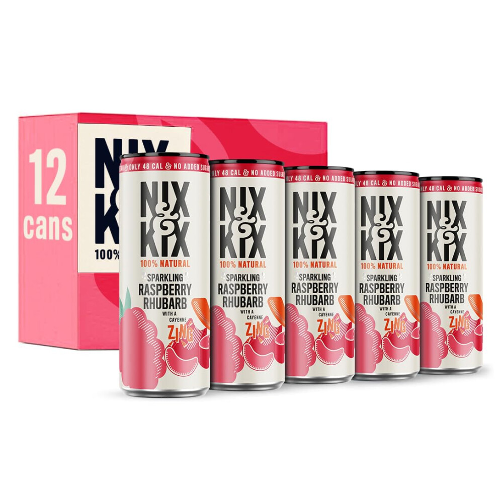 Nix & Kix | Raspberry & Rhubarb | 100% Natural Fruit Flavoured Sparkling Water | Low Calorie & Vegan Friendly | No Added Sugar Or Sweeteners | 250ml x