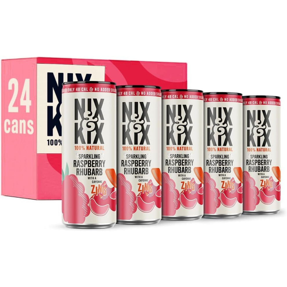 Nix & Kix Natural Raspberry & Rhubarb Sparkling Water, Low Calorie & Vegan Friendly, 250 ml (Pack of 24)