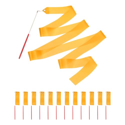 sourcing map 12PCS Yellow Dance Ribbon, Gymnastics Ribbon Twirling Ribbons for Birthday Party Streamers Decoration,6.6Ft Circus Carnival Ribbon with Sticks Wands