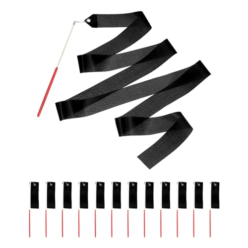 sourcing map 12PCS Black Dance Ribbon, Gymnastics Ribbon Twirling Ribbons for Birthday Party Streamers Decoration,6.6Ft Circus Carnival Ribbon with Sticks Wands