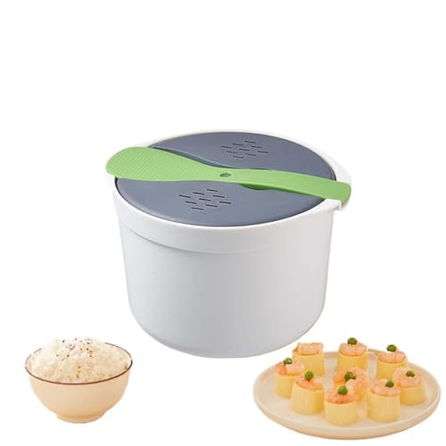 Microwave Rice Cooker Microwave Pressure Steamer Cooker with Strainer 2L Rice for Quinoa Potato Vegetables(Green)